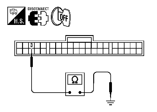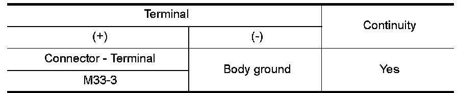 2. Check continuity between front air control connector M33 terminal 3 and ground.