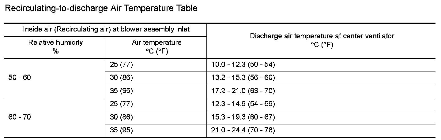 Recirculating-to-discharge Air Temperature Table
