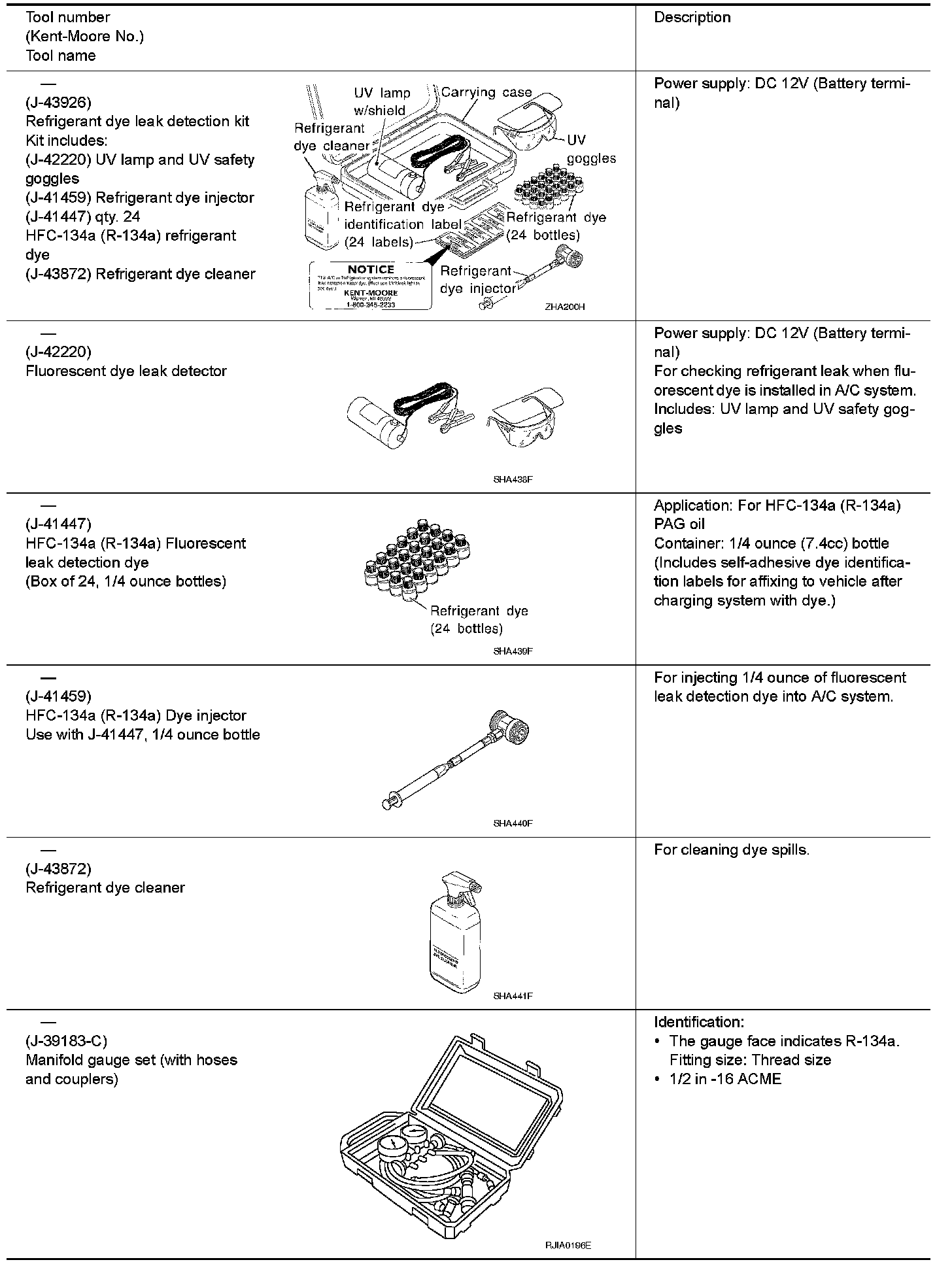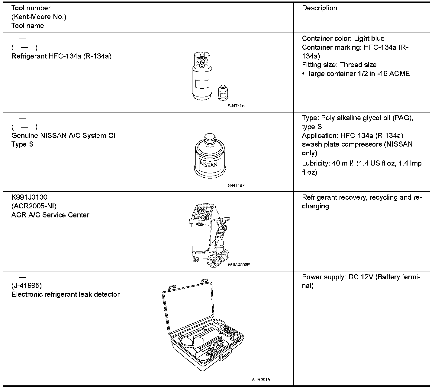HFC-134a (R-134a) Service Tool and Equipment