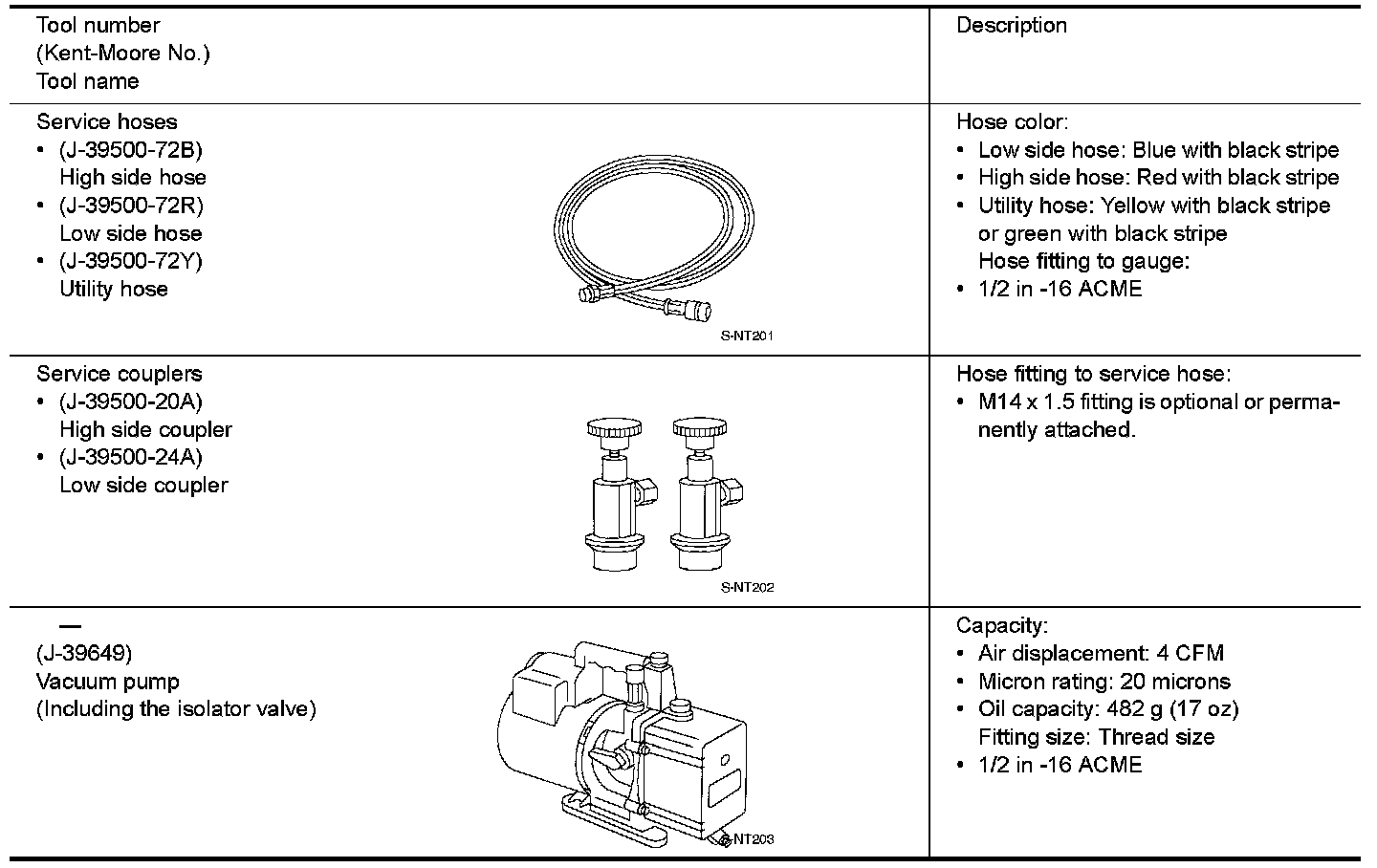 Refrigerant container fittings, service hose fittings and service equipment fittings (equipment which handles refrigerant and/or oil) are different between CFC-12 (R-12) and HFC-134a (R-134a). This is to avoid mixed use of the refrigerants/oil.