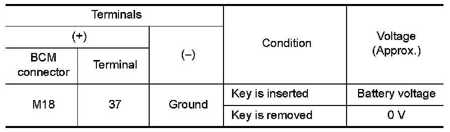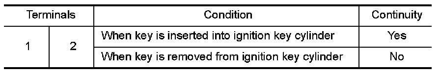 Check if the key switch 10A fuse [No. 19, located in the fuse block (J/B)] is blown.