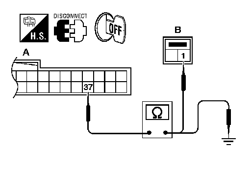 2. Check continuity between BCM harness connector (A) and key switch harness connector (B).
