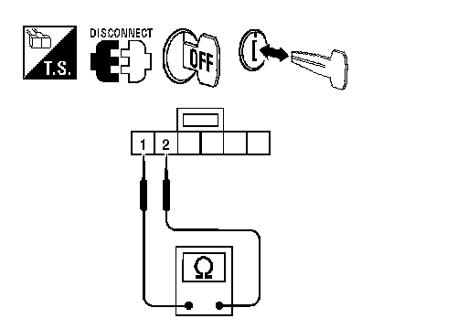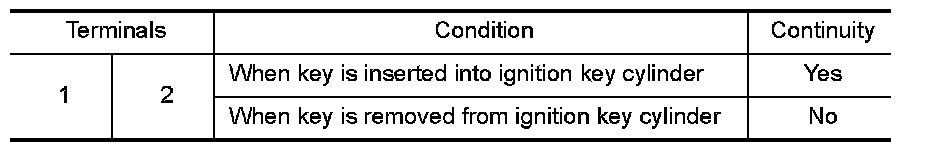 3. Check continuity between key switch and ignition knob switch terminals 1 and 2.