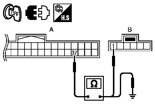 2. Check continuity between BCM harness connector (A) and key switch and ignition knob switch harness connector (B).