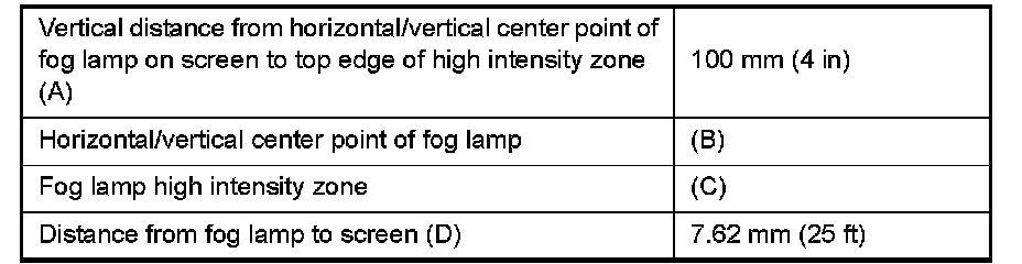 3. Adjust front fog lamps using adjusting screw so that the top edge of the high intensity zone (C) is as shown.