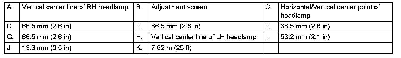 - For vertical headlamp aiming, adjust headlamp until beam pattern is positioned per specified dimensions.