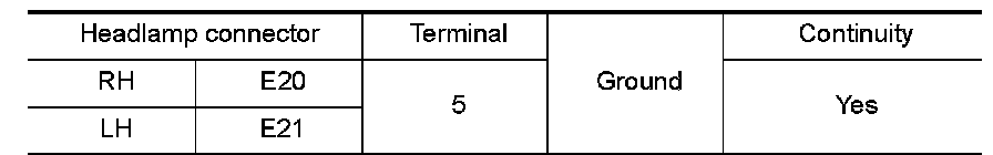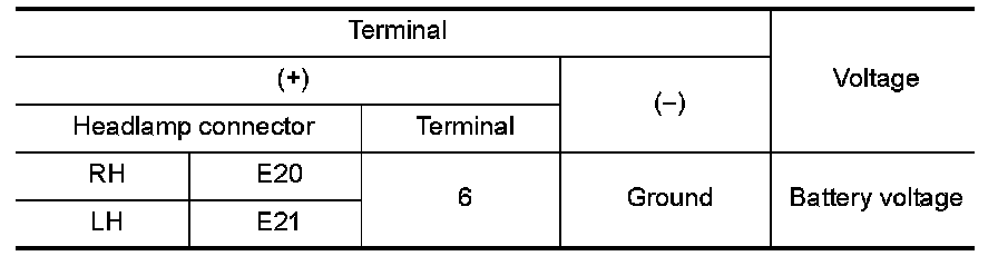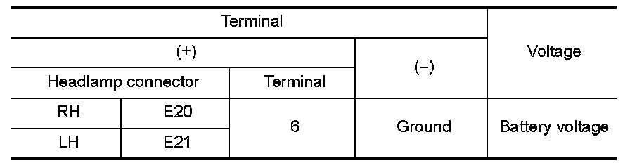 5. When headlamp high beam is operating, check voltage between headlamp harness connector and ground.