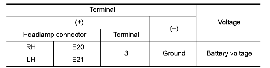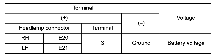 5. When headlamp low beam is operating, check voltage between headlamp harness connector and ground.