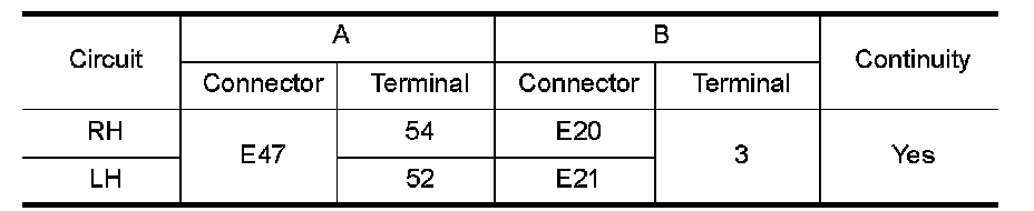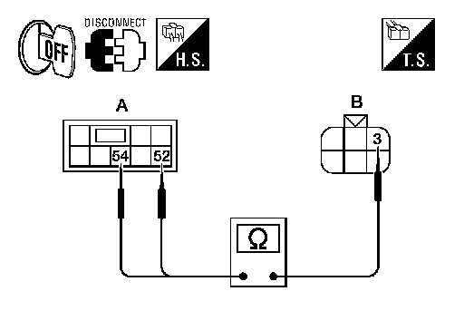 3. Check continuity between IPDM E/R harness connector (A) and headlamp harness connector (B).