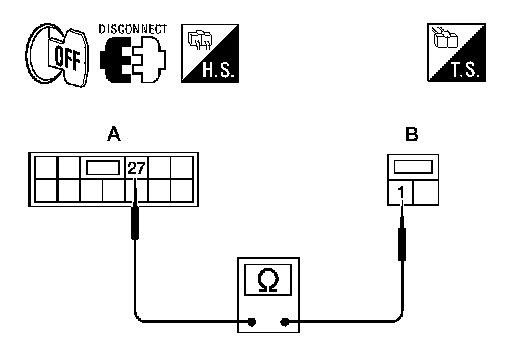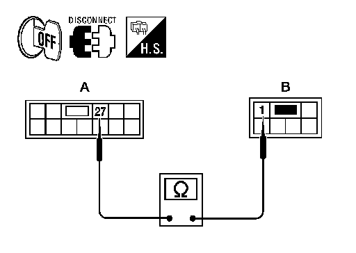 3. Check continuity between IPDM E/R harness connector (A) and license plate lamp harness connector (B).