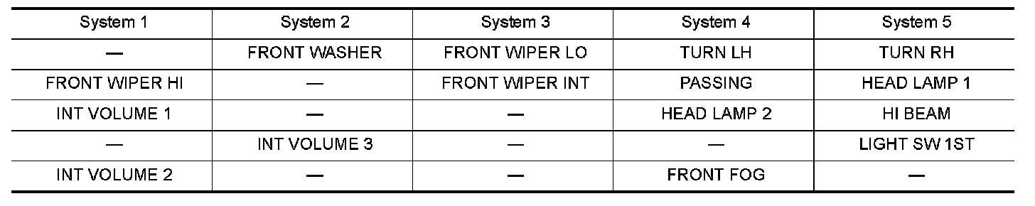 Example: When turn signal LH is inoperative, confirm that PASSING, HEAD LAMP 2 or FRONT FOG (if equipped) turn ON-OFF normally.