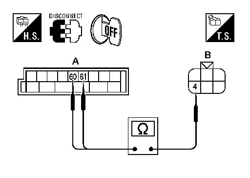 4. Check continuity between BCM harness connector M20 (A) terminal 61 and front combination lamp RH harness connector E20
