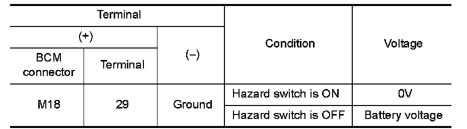 OK - Replace BCM if hazard warning lamps do not operate after setting the connector again. Service and Repair.