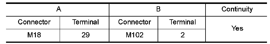 3. Check continuity between BCM harness connector M18 (A) and hazard switch harness connector M102 (B).