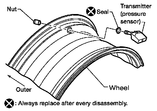 The remote keyless entry receiver receives the air pressure signal transmitted by the transmitter in each wheel.