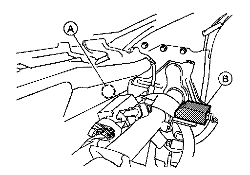The remote keyless entry receiver (without Intelligent Key (A), or with Intelligent Key (B)) is shown with the instrument panel removed.