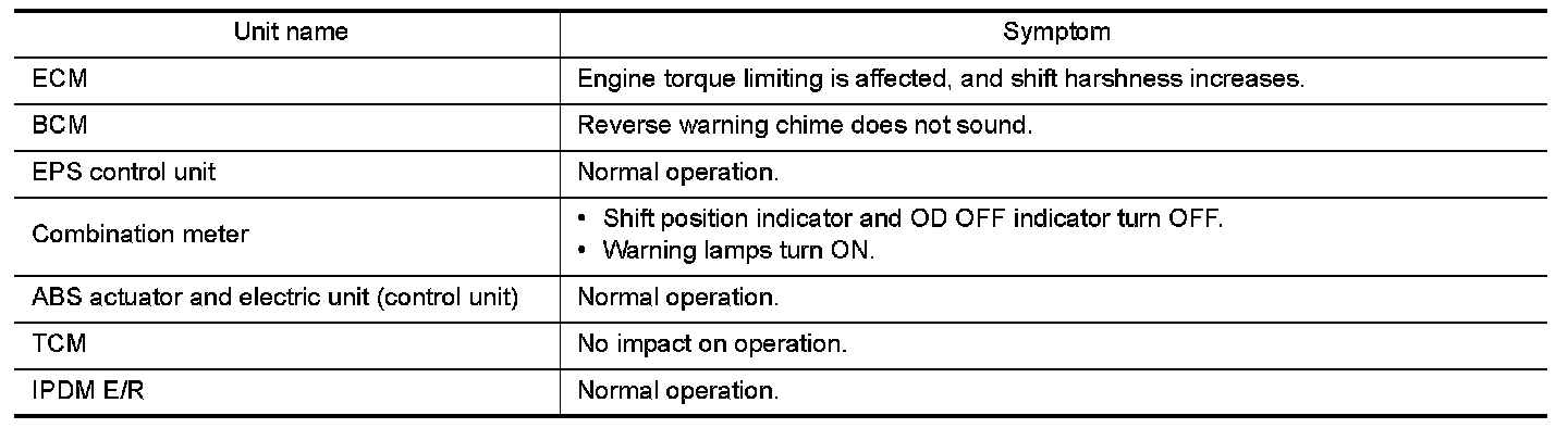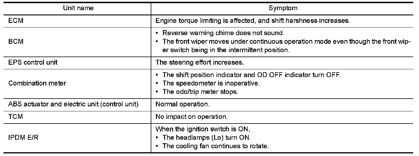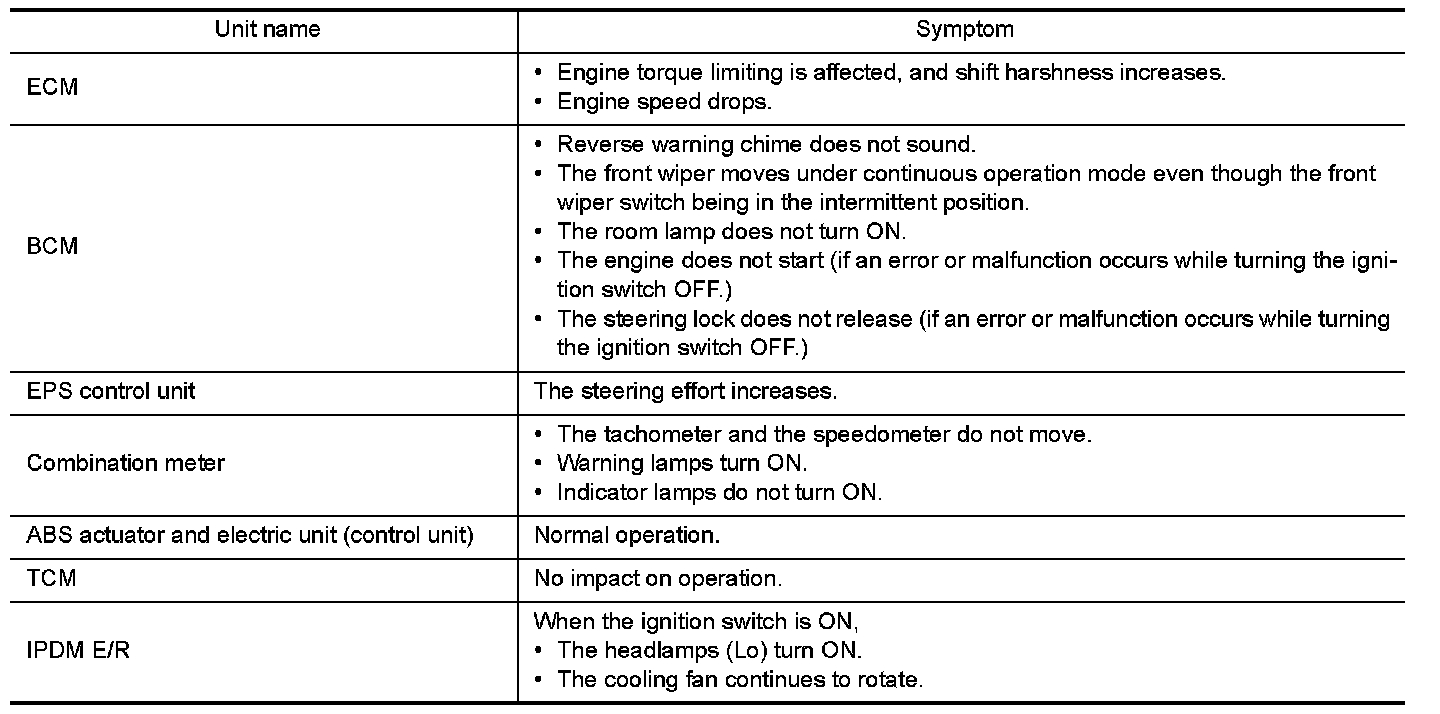 - Each vehicle differs in symptom of each unit under fail-safe mode and CAN communication line wiring.