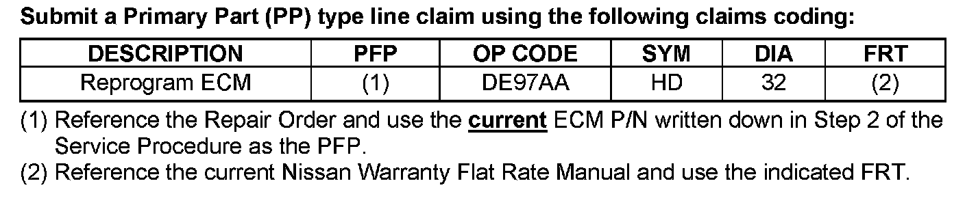 ^ Diagnosis and repairs beyond ECM reprogramming are not covered by this bulletin.