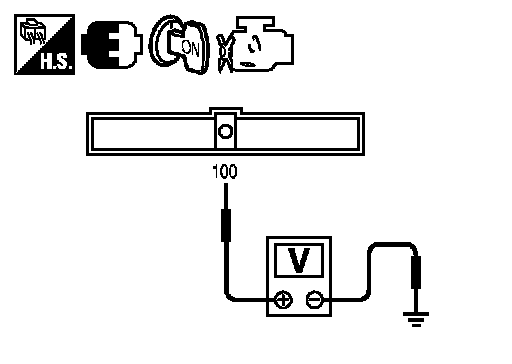 2. Check voltage between ECM terminal 100 and ground under the following conditions.