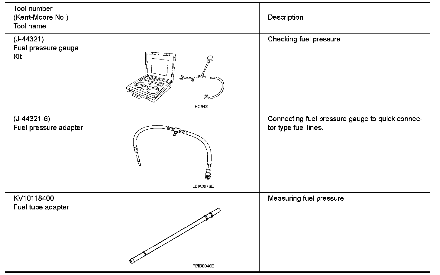 The actual shapes of Kent-Moore tools may differ from those of special service tools illustrated here.
