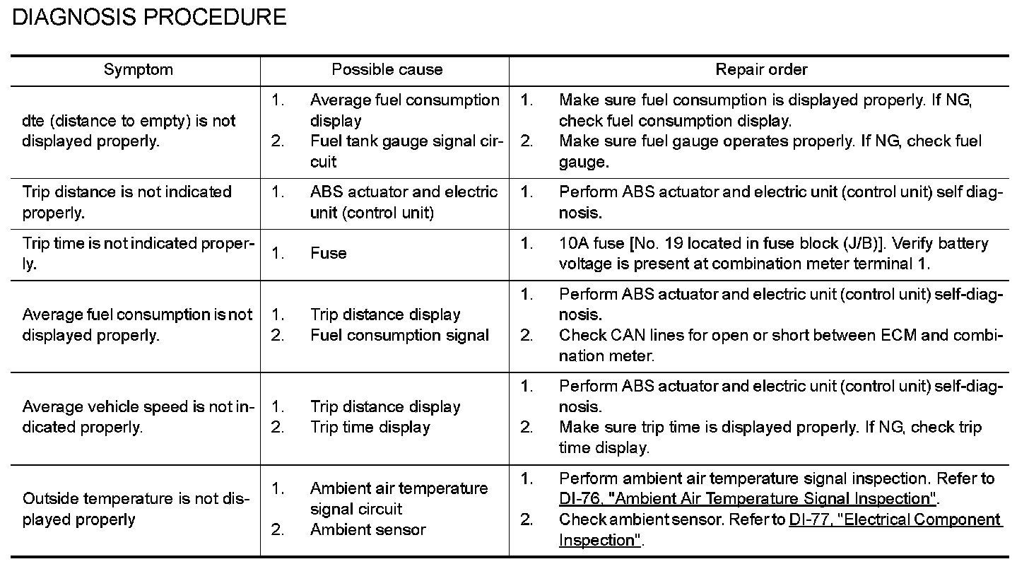 The board computer segment display can be checked by entering combination meter self-diagnostic mode. Self-Diagnosis Mode of Combination Meter.