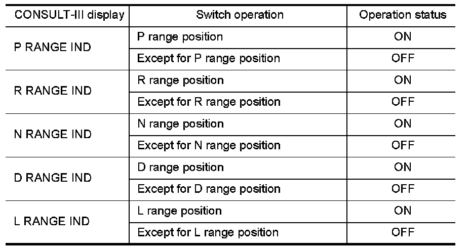 Use "DATA MONITOR" of "METER/M&A" on CONSULT-III. Confirm each indication on the monitor while operating the CVT selector lever.