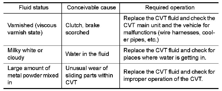 - Inspect for fluid leakage and check the fluid level. Checking CVT Fluid .