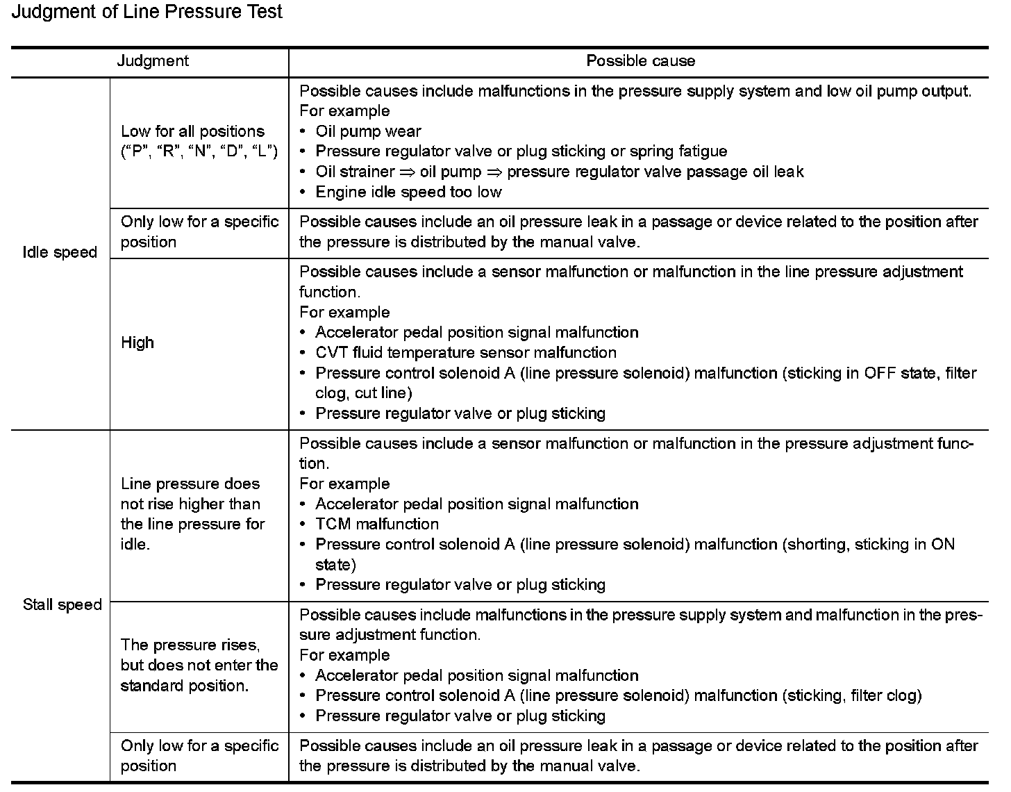 Judgment of Line Pressure Test