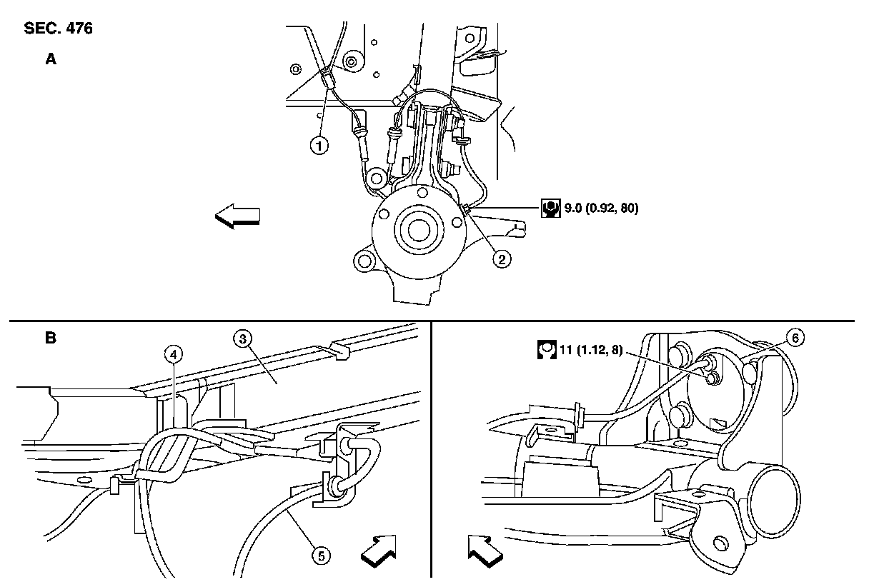 Pay attention to the following when installing wheel sensor. Tighten wheel sensor bolts to the specified torques.