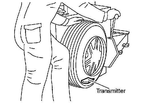 2. Deflate tire. Unscrew transmitter retaining nut and allow transmitter to fall into tire.