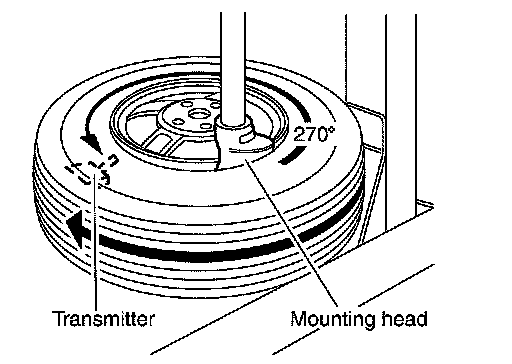 4. Place wheel on turntable of tire machine. Ensure that transmitter is 270 degrees from mounting/dismounting head.