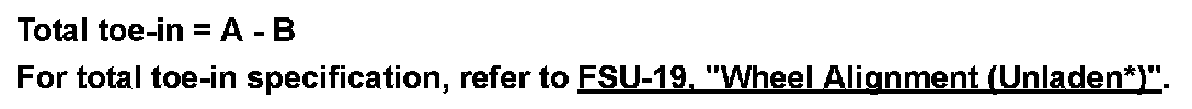 1. Check and adjust the wheel alignment with the vehicle under unladen conditions. "Unladen conditions" means that the fuel, coolant, and lubricant are full; and that the spare tire, jack, hand tools and mats are in their designated positions.