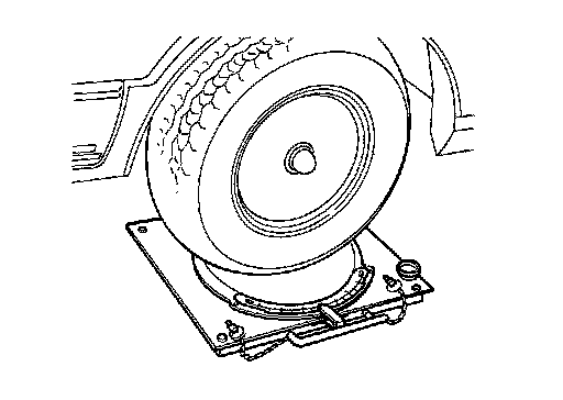 2. Place front wheels on turning radius gauges and rear wheels on stands.