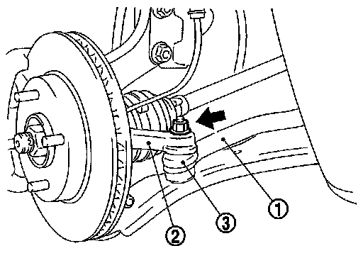 6. Remove steering outer socket (1) from steering knuckle (2) so as not to damage ball joint boot (3) using Tool.