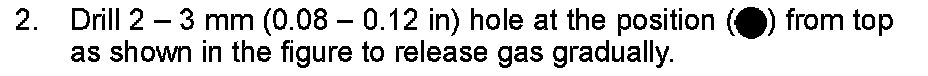 2. Drill 2 � 3 mm (0.08 � 0.12 in) hole at the position ( ) from top as shown in the figure to release gas gradually.