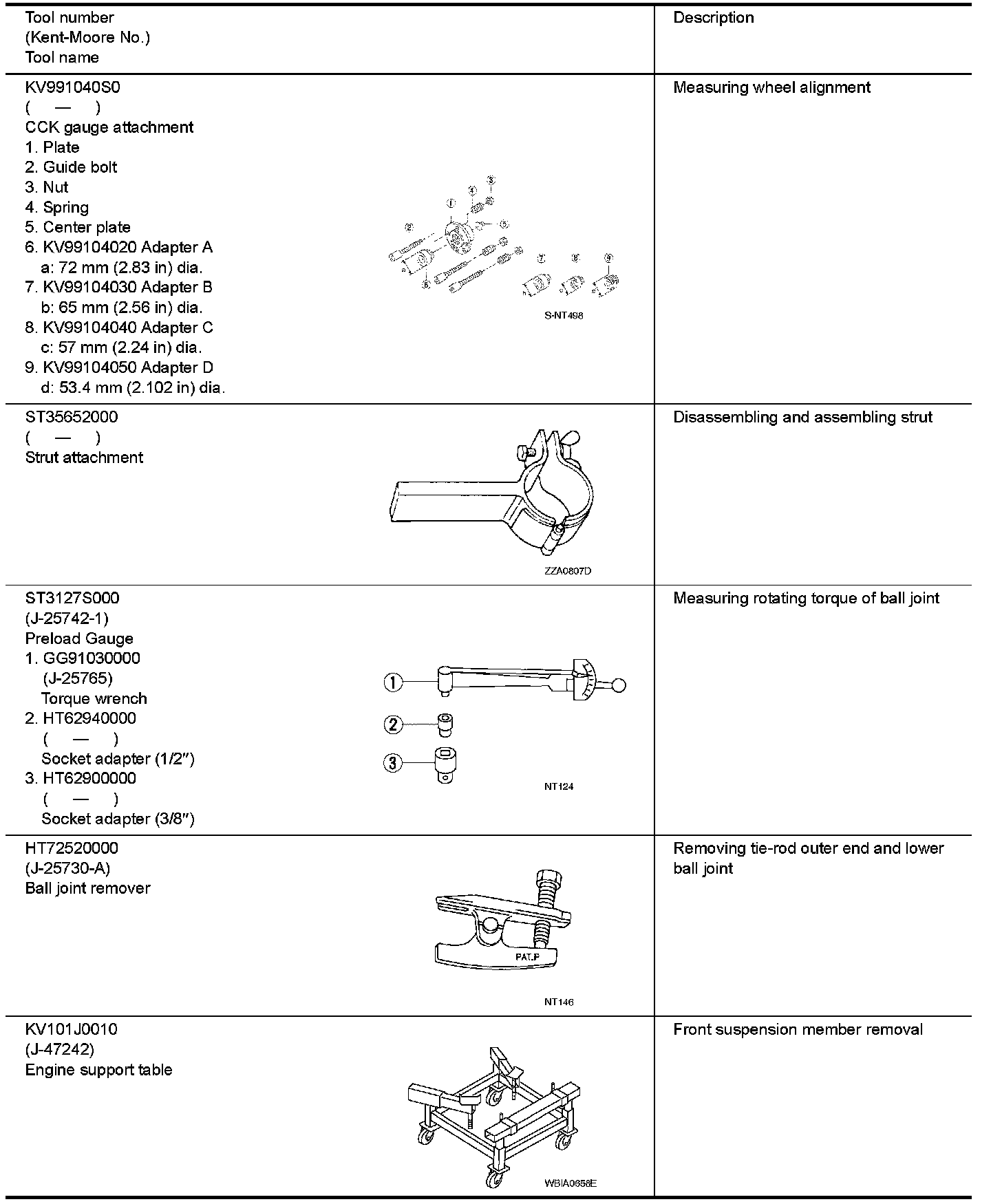 The actual shapes of Kent-Moore tools may differ from those of special tools illustrated here.