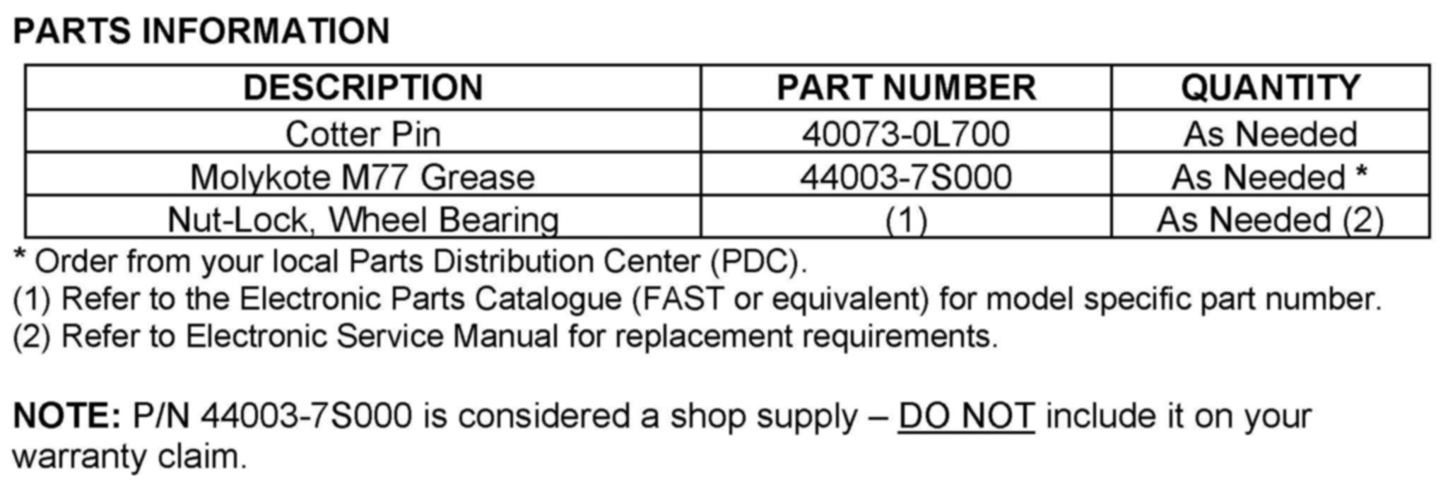 PARTS INFORMATION