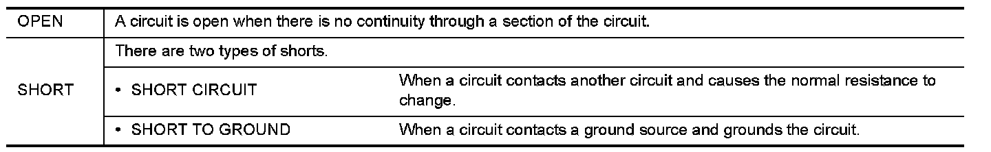 The continuity check is used to find an open in the circuit. The digital multimeter (DMM) set on the resistance function will indicate an open circuit as over limit (no beep tone or no ohms symbol). Make sure to always start with the DMM at the highest resistance level.