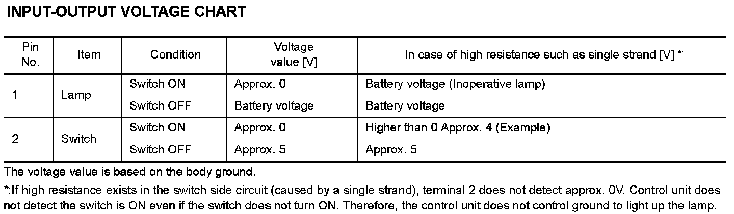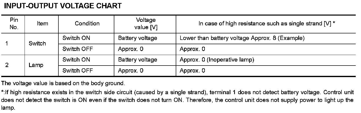 System Description:When the switch is ON, the control unit lights up the letc. INPUT-OUTPUT VOLTAGE CHART