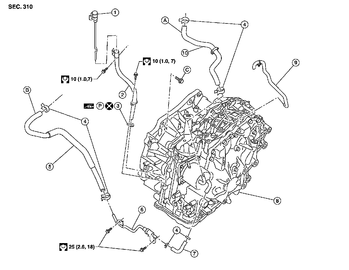 - When tightening the nuts for the torque converter while securing the crankshaft pulley bolt, be sure to confirm the tightening torque of the crankshaft pulley bolt. Component.