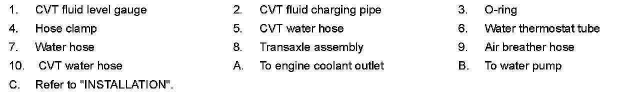 - Start and warm up the engine. Visually check that there is no leakage of engine coolant and CVT fluid.