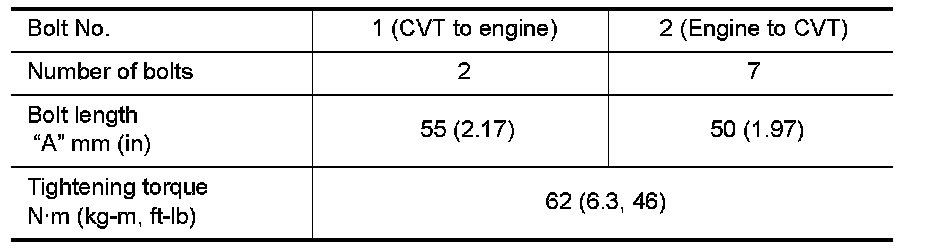 - When installing CVT to the engine, attach the bolts in accordance with the following standard.