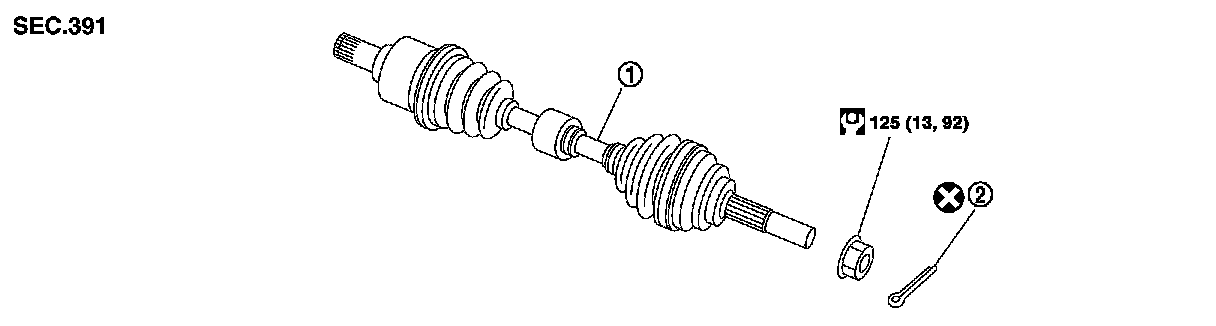 - Do not apply an excessive angle to drive shaft joint when removing from the wheel hub and bearing assembly,