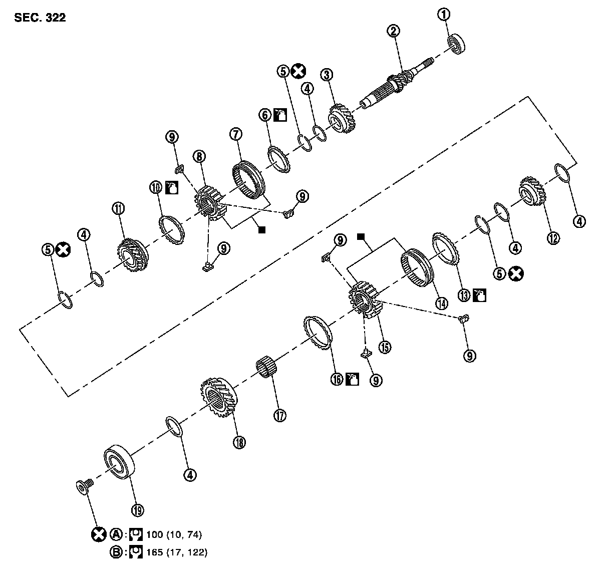 - If new mainshaft adjusting shim is thicker than previous one, offset the thickness difference by selecting thinner mainshaft rear bearing adjusting shim.