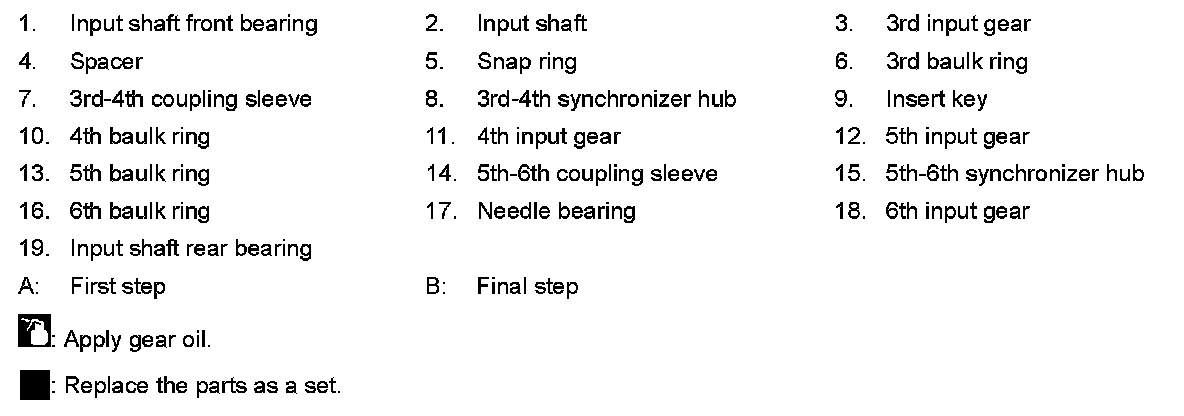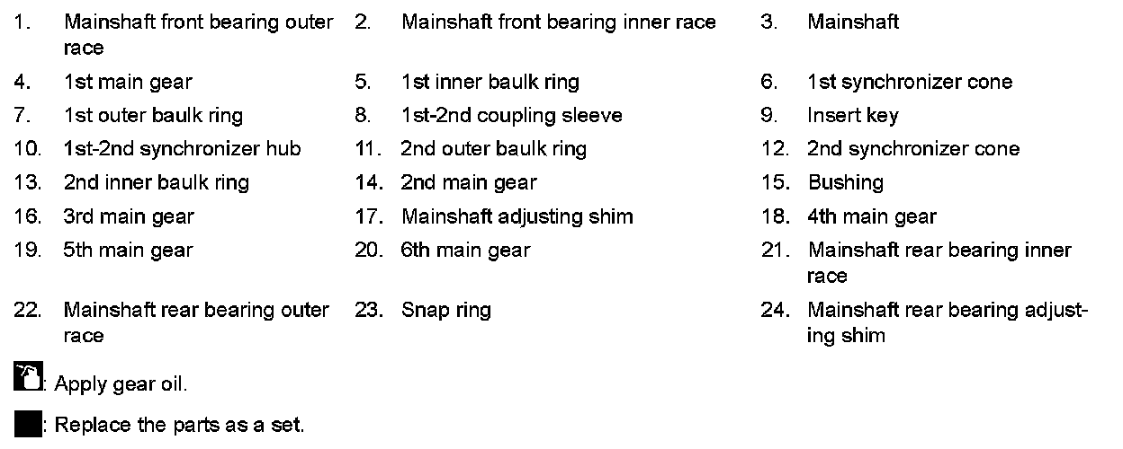 Replace mainshaft front bearing outer race and mainshaft front bearing inner race as a set.