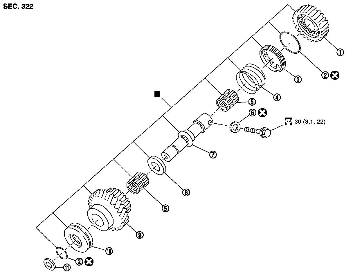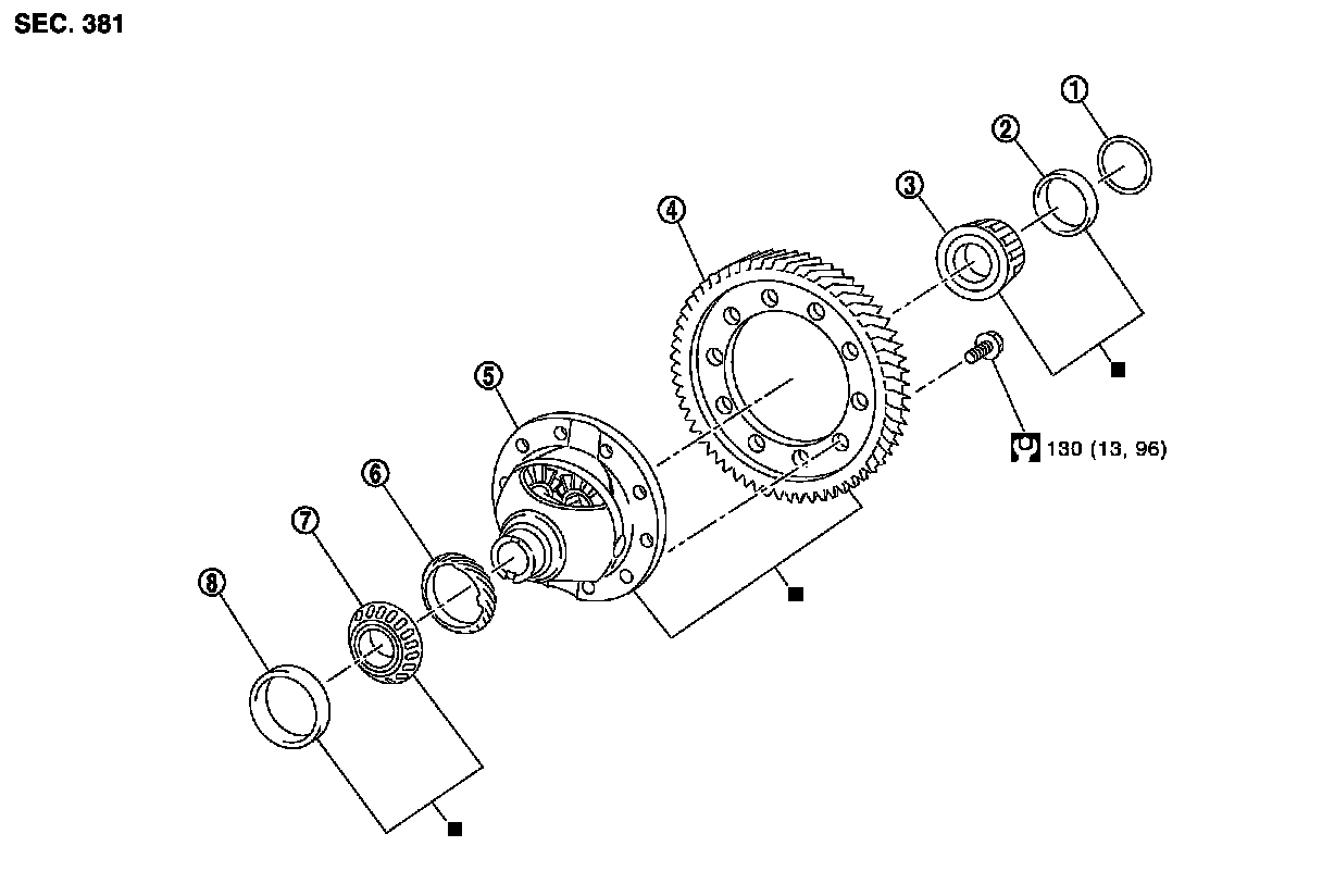 - Increase the thickness of the mainshaft rear bearing adjusting shim, if the difference is smaller than 0.025 mm (0.0010 in).
