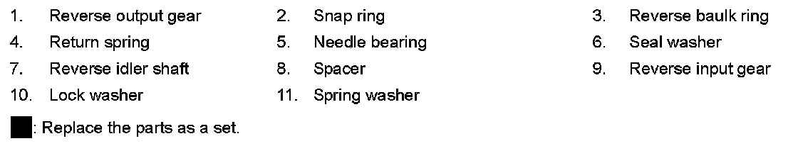 11. Remove reverse idler shaft assembly (1) according to the following procedures.