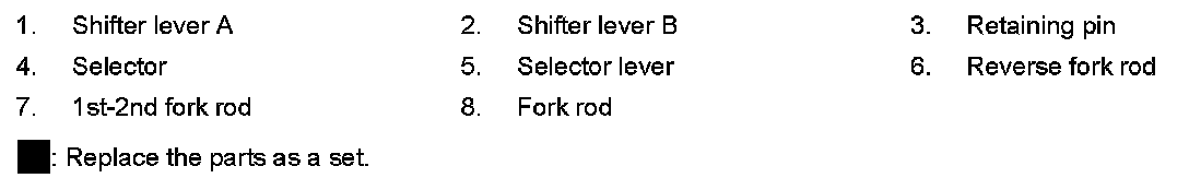 b. Remove reverse idler shaft assembly and reverse fork rod (6) from clutch housing.