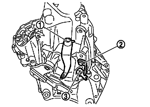 26. Shift 1st-2nd fork rod (1), fork rod (2), and reverse fork rod (3) to the neutral position.