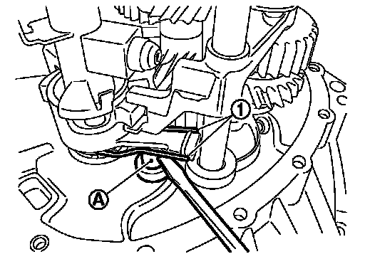 30. Install transaxle case to clutch housing while rotating shifter lever A (1) in the direction as shown.